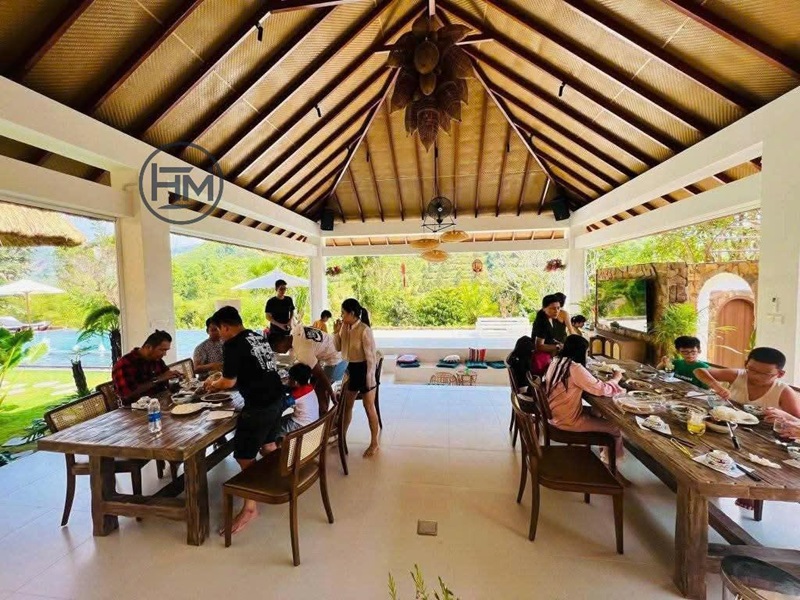 trong nhà hàng, quán café, homestay, nhà vườn.